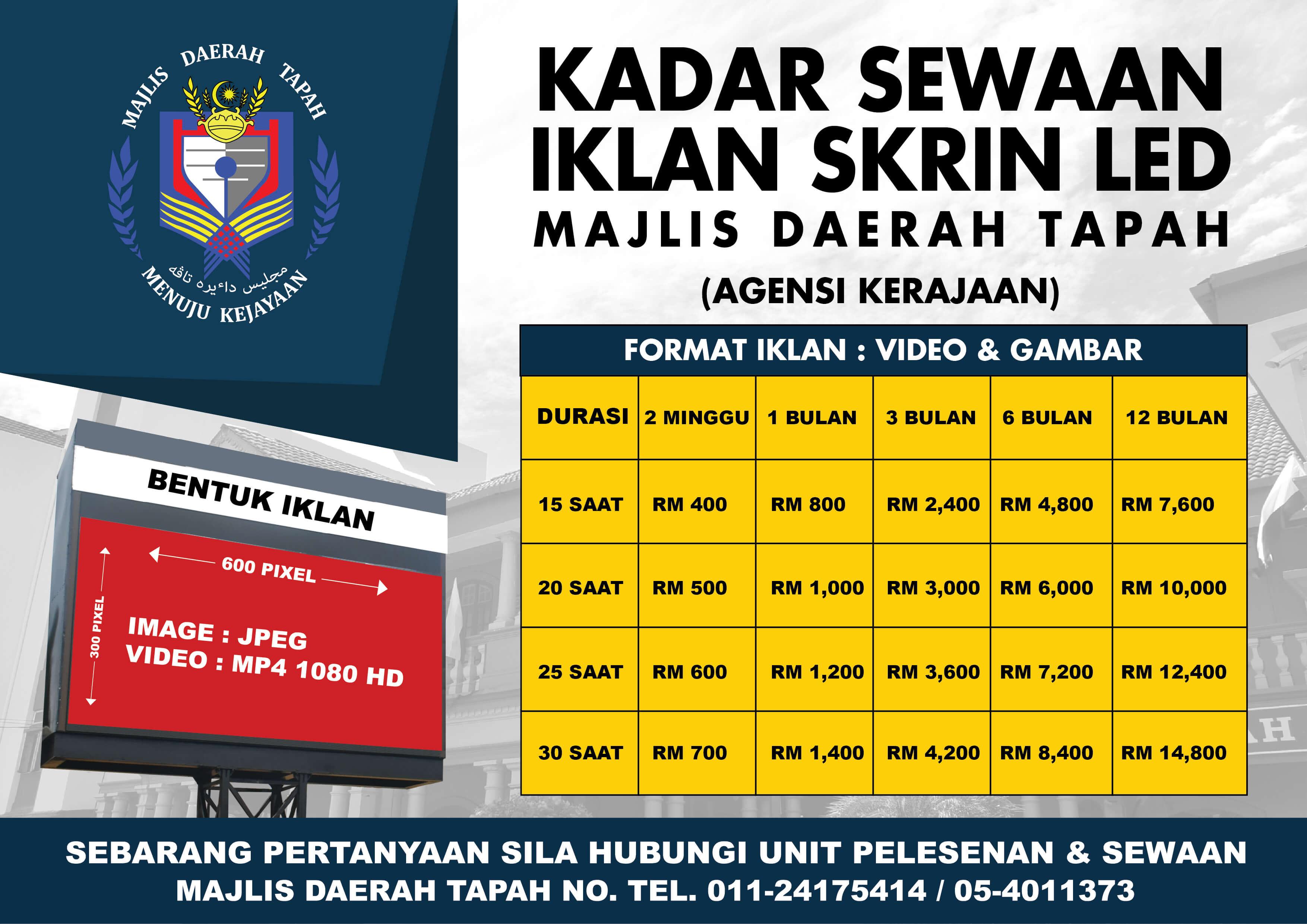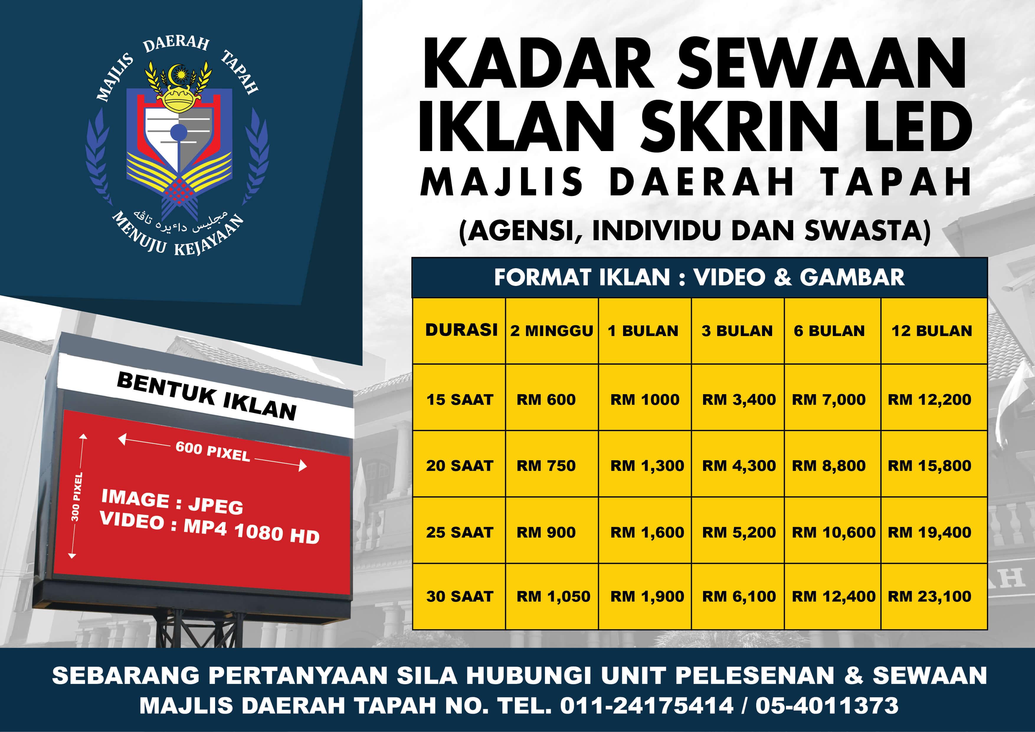 KADAR SEWAAN IKLAN SKRIN LED MAJLIS DAEERAH TAPAH